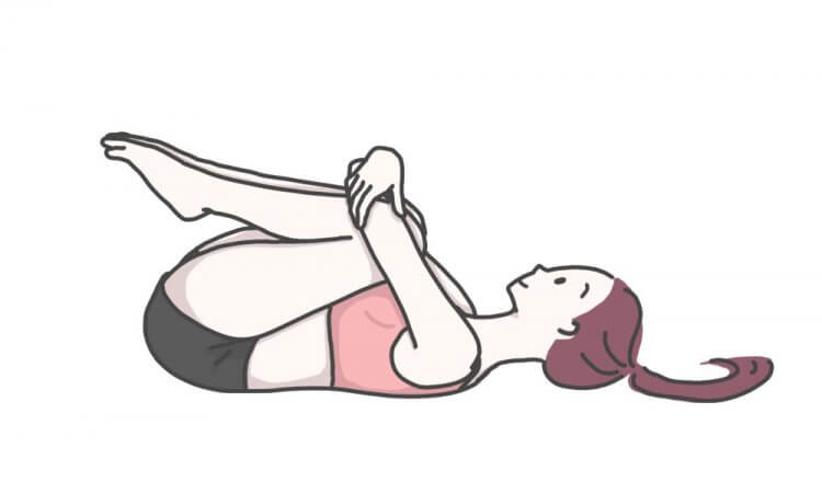 仰向けで両膝を胸に引き寄せ、ゆっくり呼吸